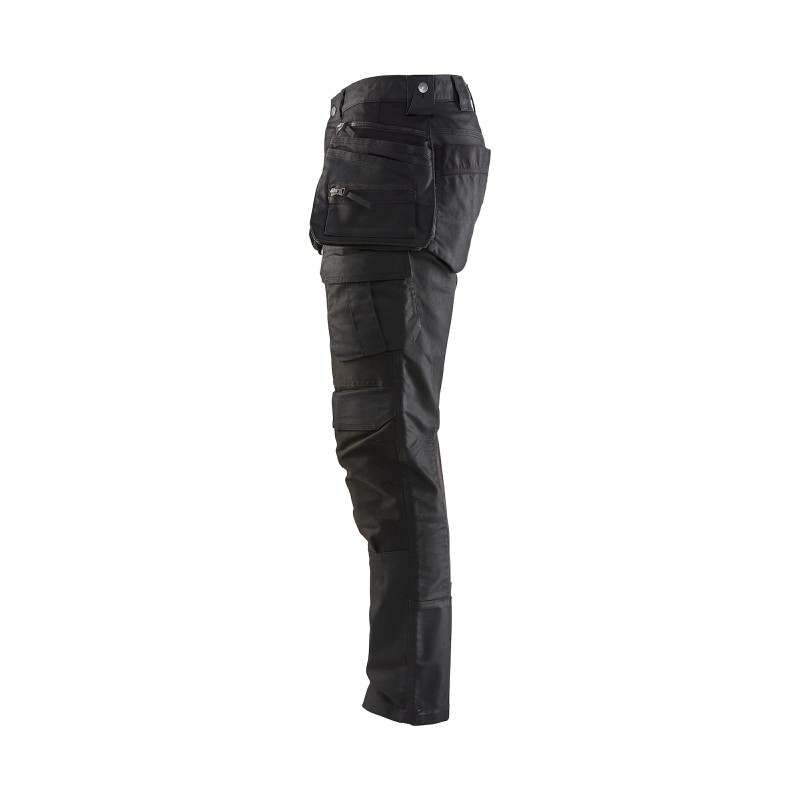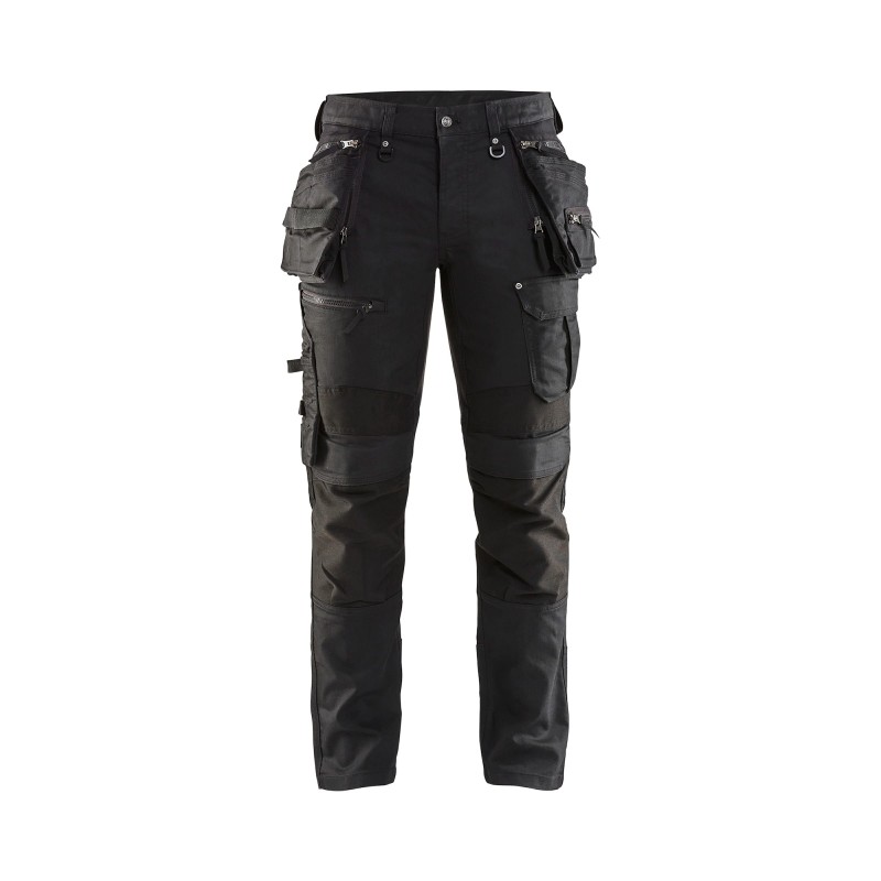 Ce pantalon artisan est une réelle innovation ! Sa coupe slim avec braguette boutons, sa matière en CORDURA® DENIM STRETCH robuste et ses poches fonctionnelles font de lui un modèle extrêmement qualitatif et confortable. C’est la nouvelle référence du pantalon artisan multipoches en version Denim Stretch. Son design jeune séduit les travailleurs exigeants en terme de look et de protection ! Pour une liberté de mouvement optimale, il dispose de panneaux stretch à l’entrejambe et aux mollets. Les poches genouillères et poches à outils, renforcées en Cordura® 1000, sont faites pour durer face aux frottements qui leur sont infligés au quotidien. Les poches à clous sont également dotées de fermetures zippées qui permettent de les porter fixes ou libres, pour s’adapter à la posture, en fonction de la situation. Il est disponible en denim marine et denim noir.